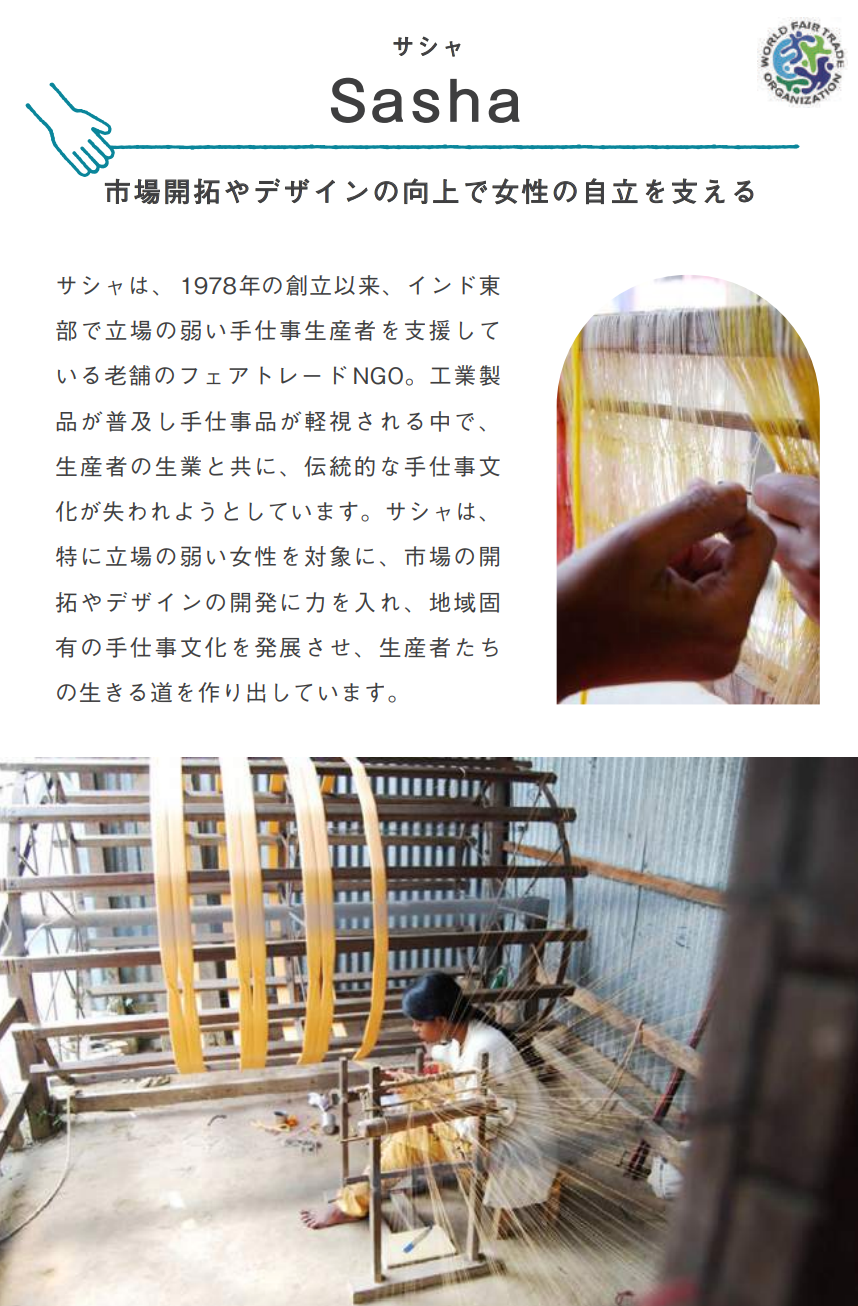 商品を作る過程で生まれたインドの「サリー」の布を使った、フェアトレードの可愛い巾着袋。